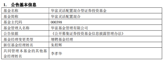 中国经济网北京3月5日讯 今日,华富基金管理有限公司公告称,华富灵活配置混合(A类000398;C类019198)增聘基金经理朱程辉。