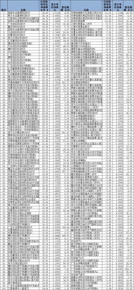 前2月共计57只QDII基金涨幅超过20%,且大部分为被动指数型基金。其中,招商中证香港科技ETF以26.80%的收益率夺得涨幅榜冠军,该基金的跟踪标的为中证香港科技指数港币指数。