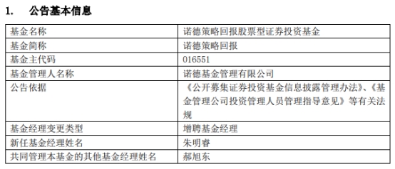 中国经济网北京3月14日讯 今日,诺德基金管理有限公司公告称,诺德策略回报(A类016551;C类016552)增聘基金经理朱明睿。