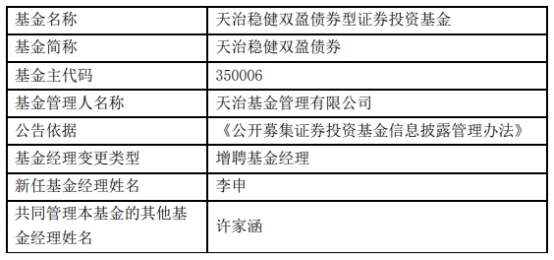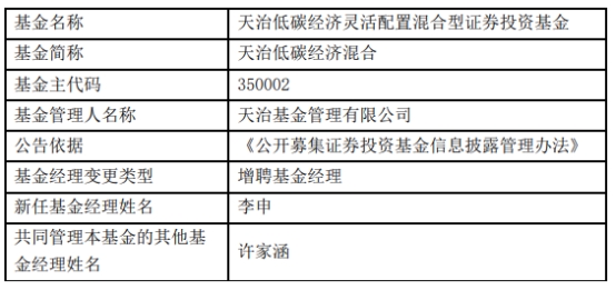 天治基金2只基金增聘李申