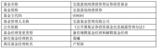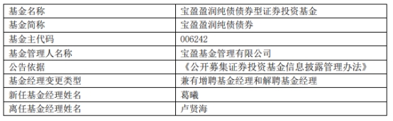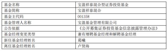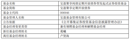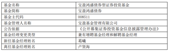 宝盈基金5只基金增聘葛曦 卢贤海离任