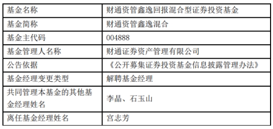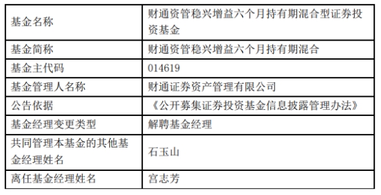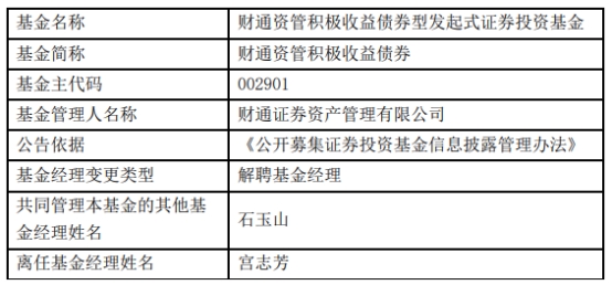 财通证券资管宫志芳离任3只基金