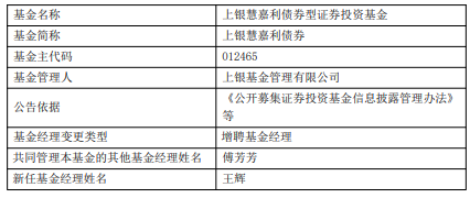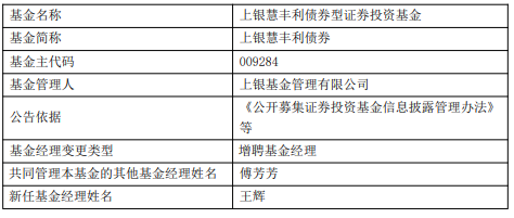 上银慧嘉利债券上银慧丰利债券增聘王辉