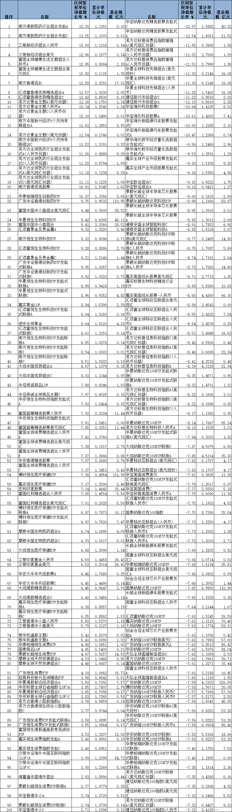 3月份QDII基金涨幅榜冠亚军也为南方基金管理股份有限公司旗下产品,南方港股医药行业混合发起A、南方港股医药行业混合发起C分别涨13.30%、13.25%,该基金成立于2023年10月24日,截至2025年4月1日,其累计净值为1.1391元、1.1070元。
