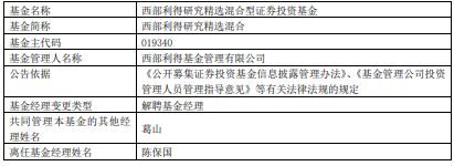 陈保国离任西部利得研究精选混合