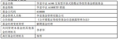 郜哲离任华富中证A100ETF联接 李孝华管理