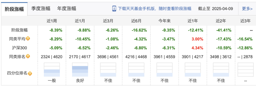 在业绩表现上,上银新能源产业精选近一年收益率排名居中后段。据天天基金网,截至4月9日,该产品A份额净值已跌至0.4596元,近一年亏损12.41%,在4217只同类产品中排名第3901名。