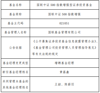 中国经济网北京4月14日讯 近日,国联基金公告,国联中证500指数增强、国联智选对冲3个月定开混合增聘黄磊鑫。
