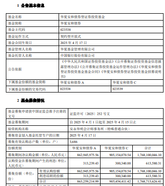 中国经济网北京4月21日讯 近日,华夏基金发布华夏安和债券型证券投资基金基金合同生效公告。