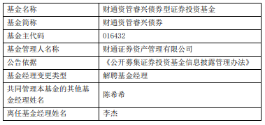 李杰离任财通资管睿兴债券基金 陈希希管理
