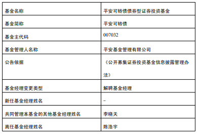 陈浩宇离任平安可转债