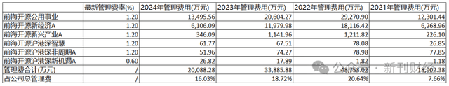 尽管在业绩“滑铁卢”与资金赎回潮的双重暴击下,崔宸龙管理的基金规模从2021年四季度末的409.02亿元大幅缩水至2024年四季度末的152.55亿元,但其在前海开源基金的管理费创收体系中仍占据核心位置,业绩波动对其岗位稳定性从未构成实质性影响。