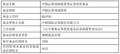 中银证券安业债券与中银证券鸿瑞债券增聘刘灿