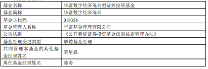 陈奇离任华富数字经济混合基金