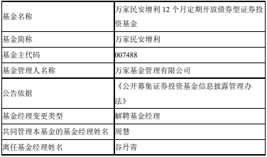 中国经济网北京5月23日讯 今日,万家基金公告,谷丹青离任万家民安增利12个月定开债。