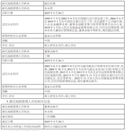 民生加银基金任命朱永明为副总经理 丁辉为董事会秘书