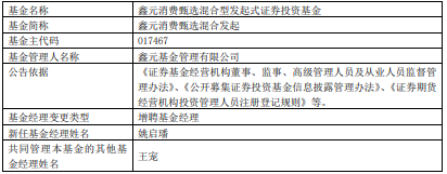 鑫元消费甄选混合发起增聘姚启璠 成立两年亏损45%