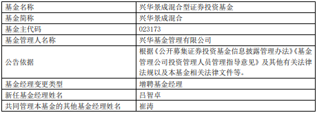 中国经济网北京7月11日讯 今日,兴华基金公告,兴华景成混合增聘吕智卓。
