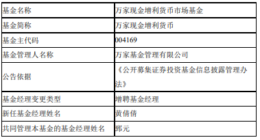 万家现金增利货币增聘黄倩倩