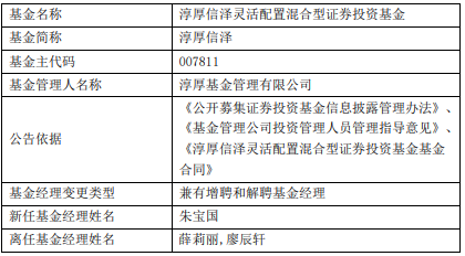 淳厚益加债券与淳厚信泽混合增聘朱宝国