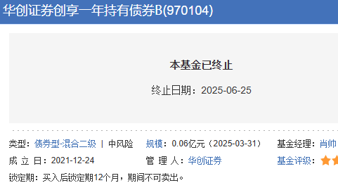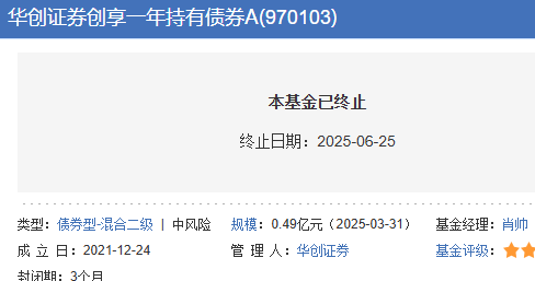华创证券创享一年持有债券基金清盘 规模不足五千万