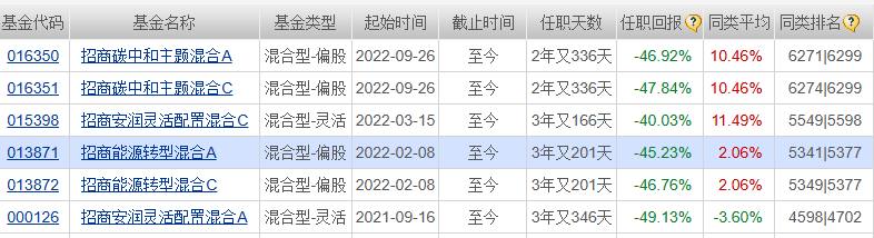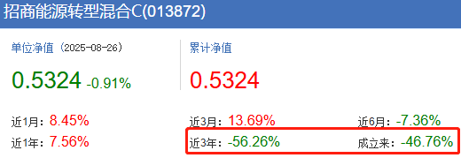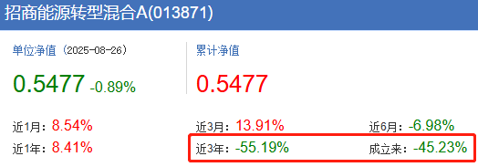 招商能源转型混合近3年亏损55% 基金经理在管基金尽墨
