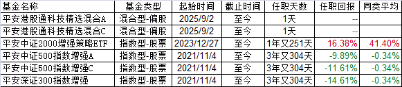 目前,林清源和俞瑶均管理着6只基金,但从任职回报看,俞瑶管理的多只指数基金业绩不佳,平安中证500指数增强A、平安中证500指数增强C、平安深证300指数增强在3年多时间里跌幅均大于同类均值水平。