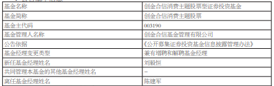 中国经济网北京9月9日讯 今日,创金合信基金公告,创金合信消费主题股票刘毅恒,陈建军离任。