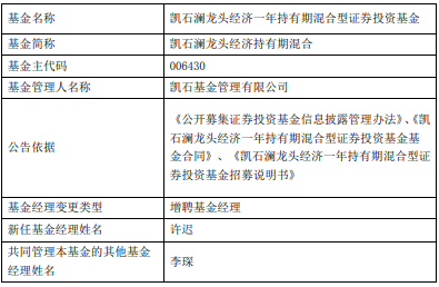 中国经济网北京9月9日讯 今日,凯石基金公告,凯石澜龙头经济持有期混合增聘许迟。