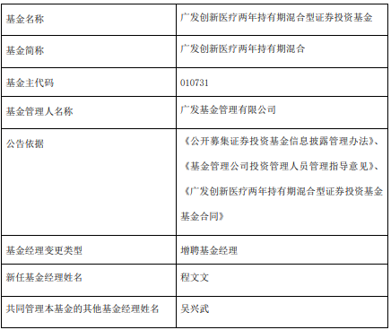 中国经济网北京9月9日讯 今日,广发基金公告,广发创新医疗两年持有期混合增聘程文文。
