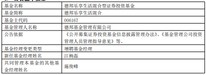 中国经济网北京9月10日讯 今日,德邦基金公告,德邦乐享生活混合增聘江杨磊。