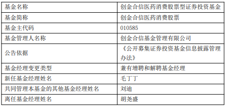 中国经济网北京9月19日讯 今日,创金合信基金公告,创金合信医药消费股票增聘毛丁丁,胡尧盛离任。