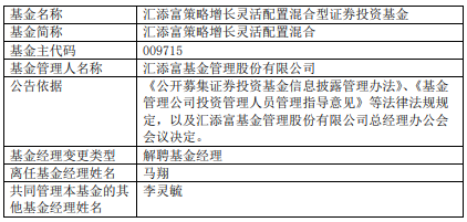 马翔离任汇添富策略增长灵活配置混合