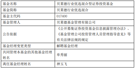 神玉飞离任2只基金 贝莱德中国新视野累计亏3成