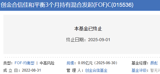 创金合信佳和平衡3个月混合FOF清盘 成立3年没赚钱