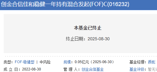 创金合信佳和稳健一年混合FOF清盘 成立3年没赚钱