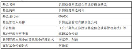 中国经济网北京9月25日讯 今日,长信基金公告,何增华离任长信稳健精选混合、长信利保债券、长信易进混合。