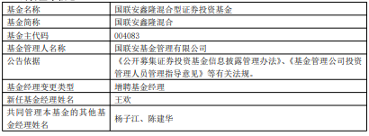 国联安鑫汇混合与国联安鑫隆混合增聘王欢