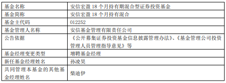 中国经济网北京9月29日讯 近日,安信基金公告,安信宏盈18个月持有混合增聘孙凌昊。