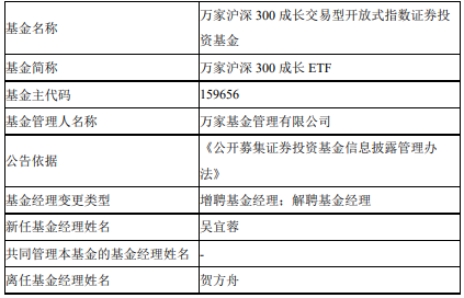 中国经济网北京9月30日讯 今日,万家基金公告,万家沪深300成长ETF、万家创业板综合ETF、万家中证半导体材料设备主题ETF、万家中证全指公用事业ETF增聘吴宜蓉。