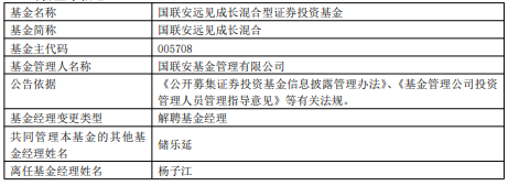 杨子江离任国联安基金旗下3只基金