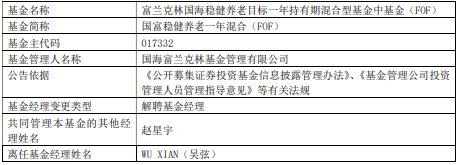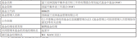 吴弦离任国海富兰克林基金旗下3只FOF基金