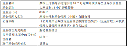 吴慧文离任大摩添利18个月开放债券