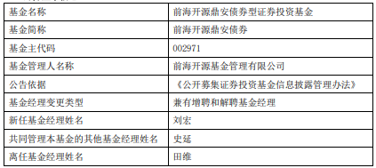 中国经济网北京10月20日讯 近日,前海开源基金公告,前海开源鼎安债券增聘刘宏,田维离任。