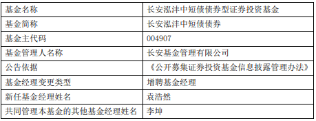 长安泓沣中短债债券长安泓润纯债债券增聘袁浩然
