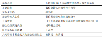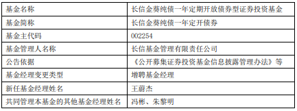 长信金葵纯债一年定开债长信稳固60天滚动增聘王蔚杰