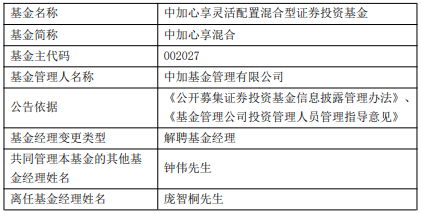 庞智桐离任中加基金旗下3只基金 年内收益均个位数