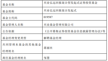 邹慧离任兴业致远混合兴业弘远回报混合发起式