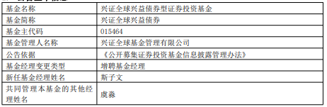 中国经济网北京10月29日讯 今日,兴证全球基金公告,兴证全球兴益债券增聘斯子文。