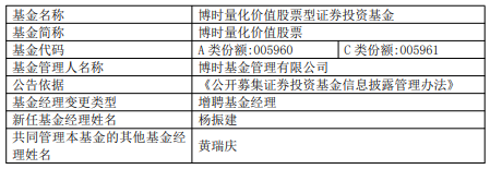 中国经济网北京11月3日讯 今日,博时基金公告,博时量化价值股票增聘杨振建。